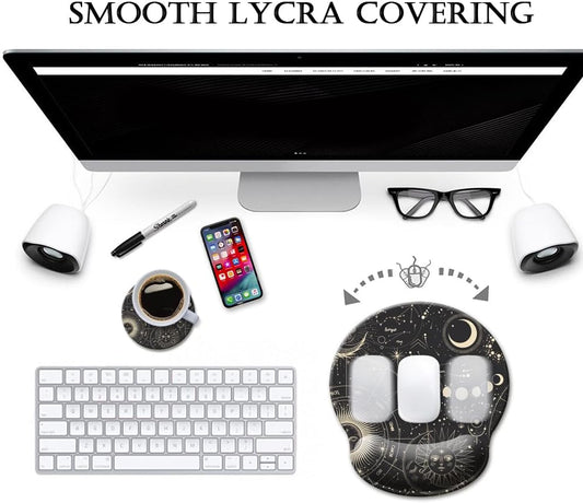 Ergonomic Wrist Support Gel Mouse Pad, Wrist Rest Comfortable Computer Mouse Pad for Laptop, Pain Relief, Non-Slip Rubber Base,Moon Phase