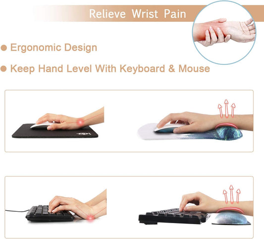 Keyboard Wrist Rest and Mouse Wrist Rest Pad, Made of Memory Foam, Ergonomic Support, Easy Typing and Relieve Wrist Pain for Gaming, Computer, Office, Laptop (D-Forest)