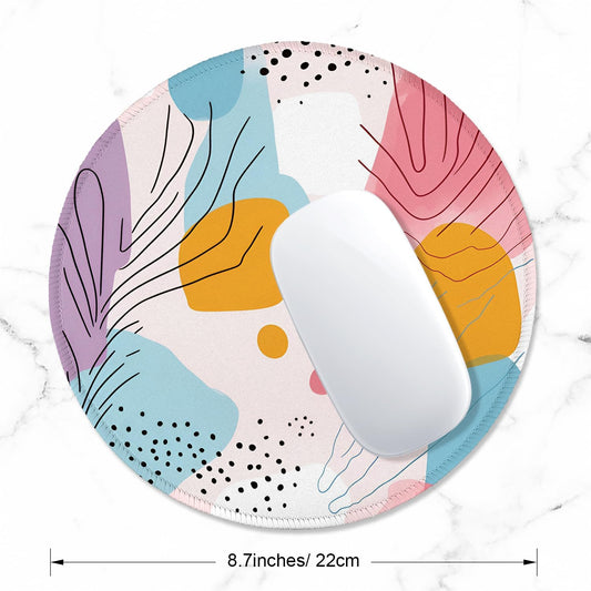 round Mouse Pad with Stitched Edge Premium-Textured Waterproof Non-Slip Rubber Base Desktop Protection Mat Diameter 8.7 Inches, Art Style Pattern