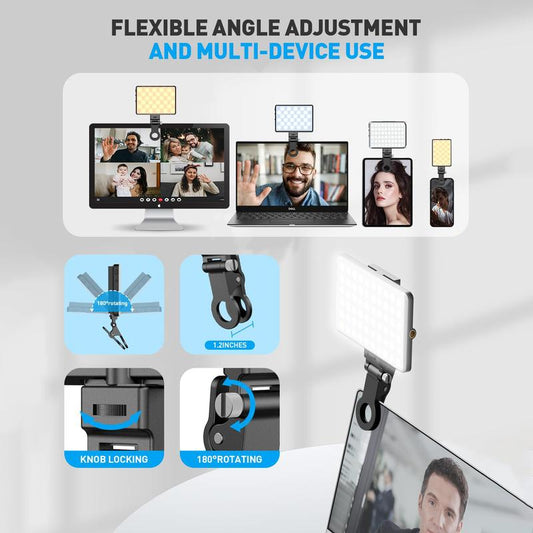 Portable Selfie Light with Front & Back Clip ,USB Rechargeable High Power 60 LED 3000Mah Phone Fill Light with CRI 95+,Adjusted 3 Light Modes for Cellphone, Ipad,Camera,Laptop,Vlog,Makeup, Tiktok